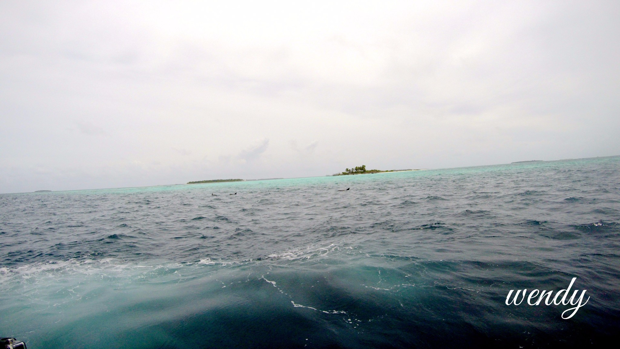 四季兰达属于芭环礁,每年6-10月分酒店有推出manta on call的活动,每个人都配戴一个手机,如果接到电话后必须在一个小时内赶上海洋生物中心,然后集合去看MANTA,因为MANTA停留的时间不会太长,海洋生物中心的工作人员每天都会出海去寻找MANTA.这次酒店是和我们说,我们一起去寻找,然后我们按照规定的时候在海洋生物中心集合。全部是外国人,就我一个中国人,表示很孤单。 在寻找MANTA的路上,偶遇海豚。