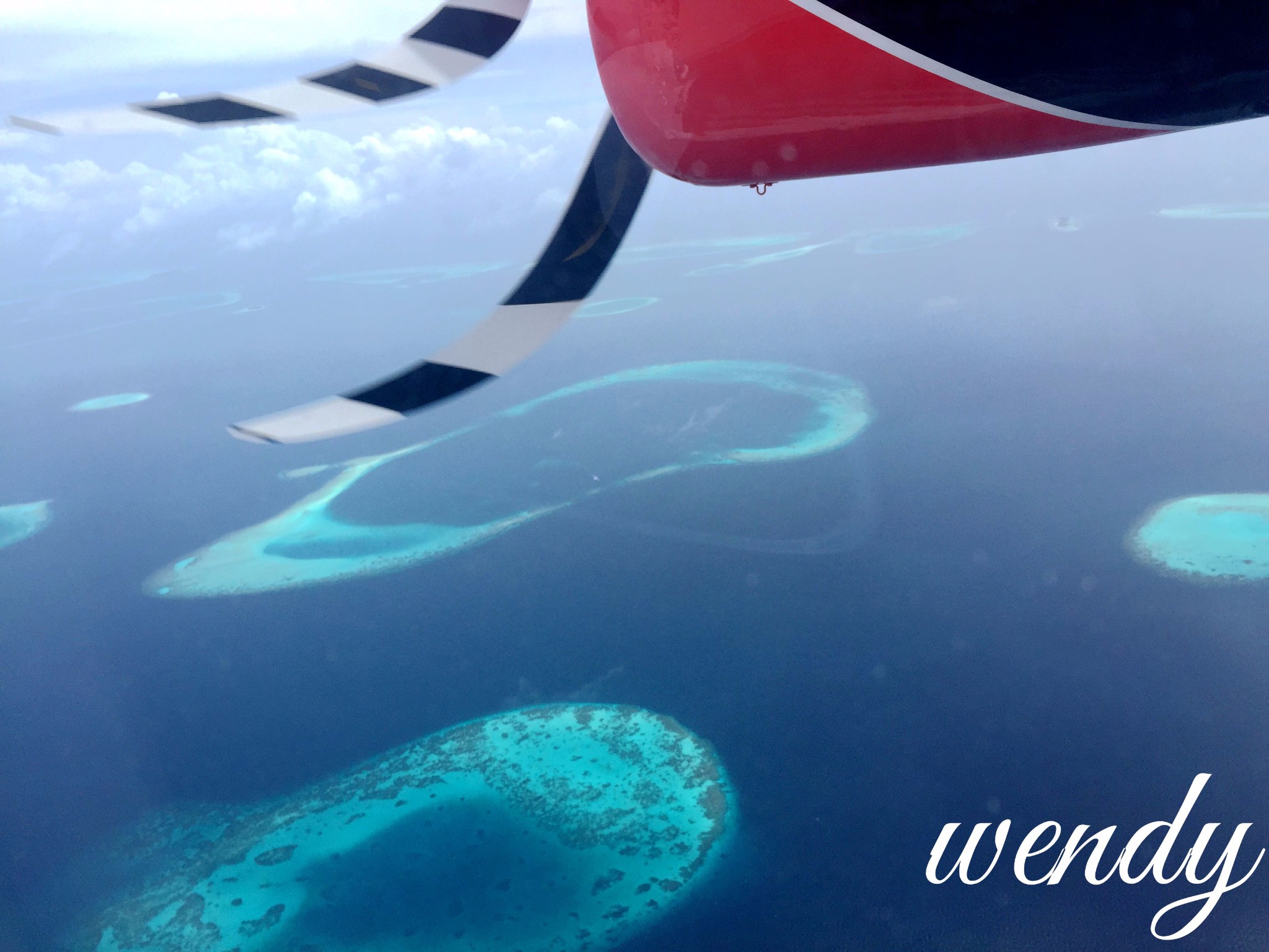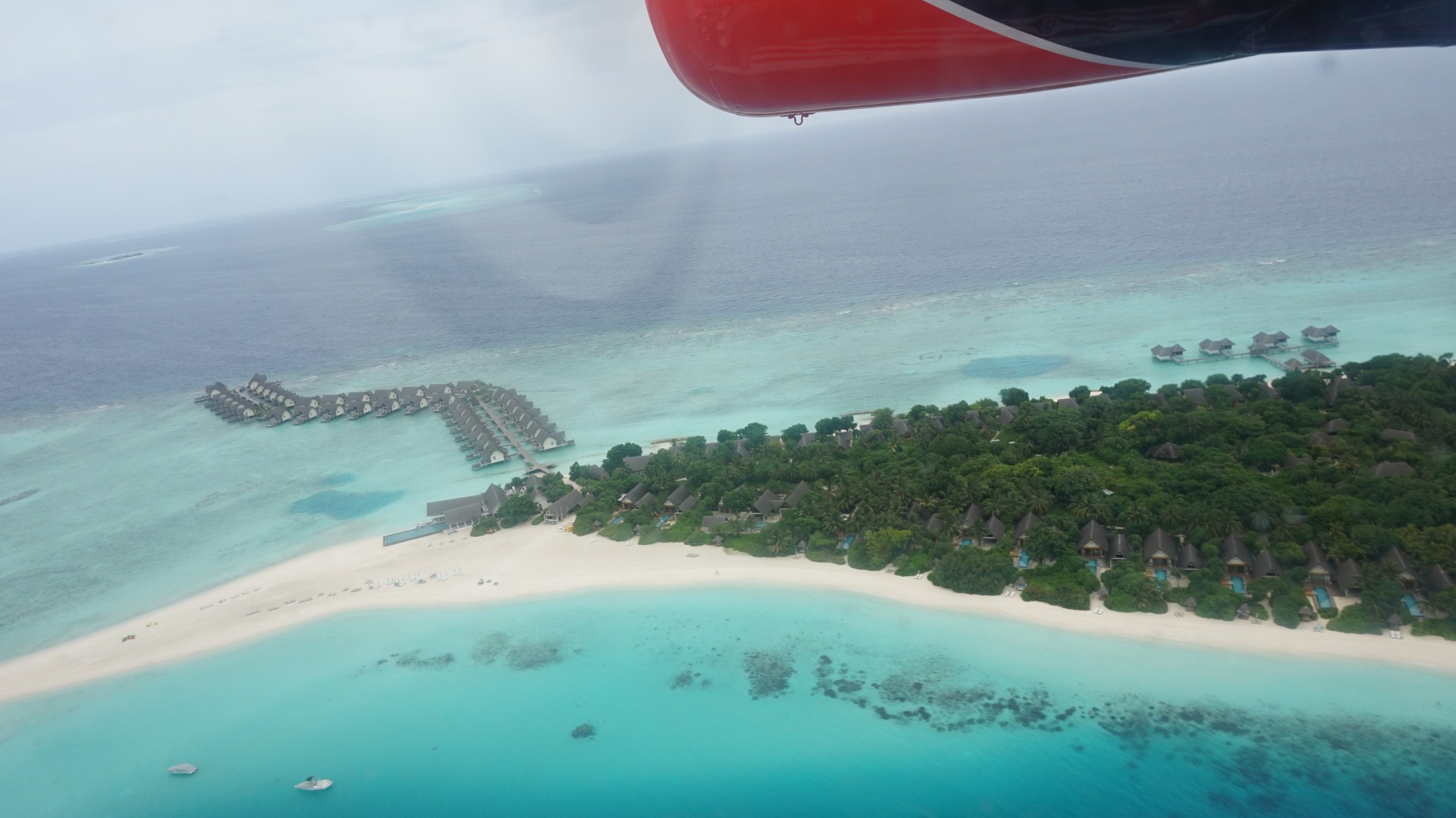 我们是从小四季-大四季,一般四季都有一个优惠政策,就是晚班机到达的小伙伴们可以免费入住小四季一晚,然后第二天从小四季坐水飞到达大四季。四季酒店会提前一天告诉你们水飞时间,退房以及离岛的时间 。然后再坐快船几分钟送到一个甲板上,坐水飞去往四季兰达。 航拍每次都是必不可少。有可能看多少次也看不厌。