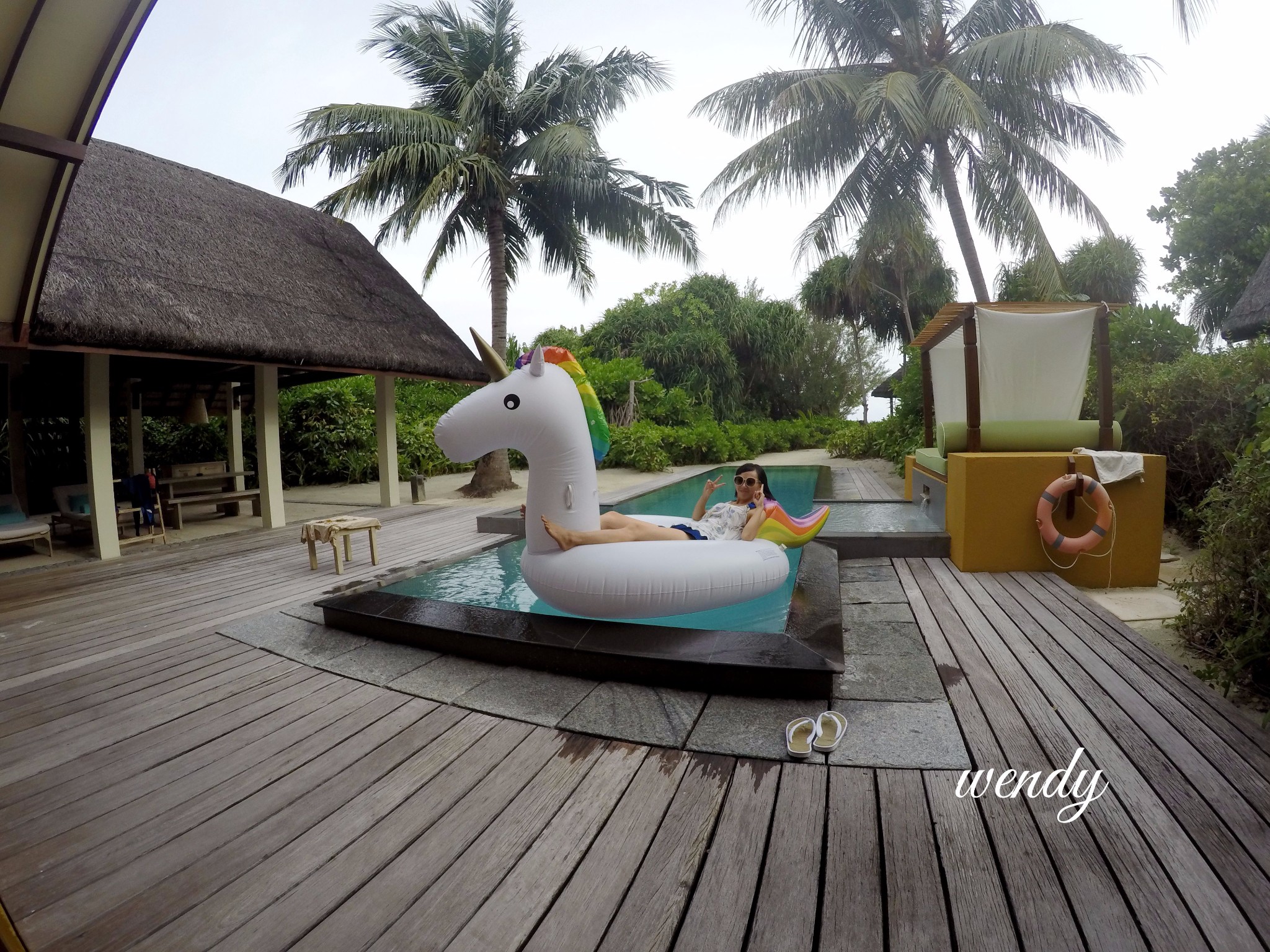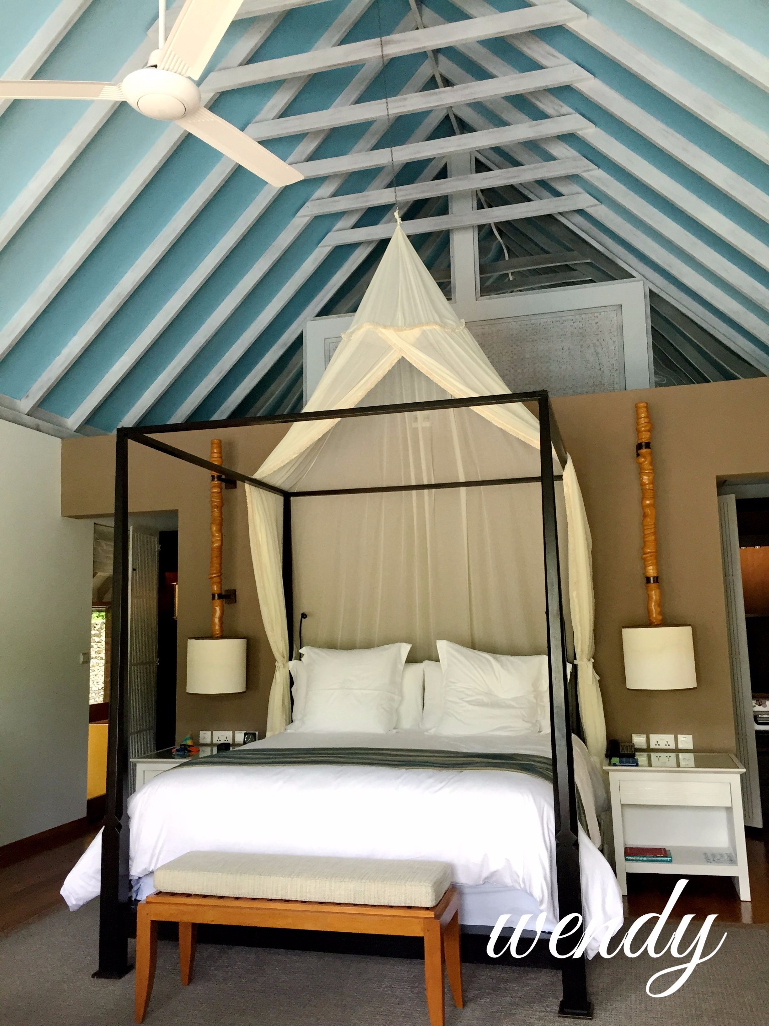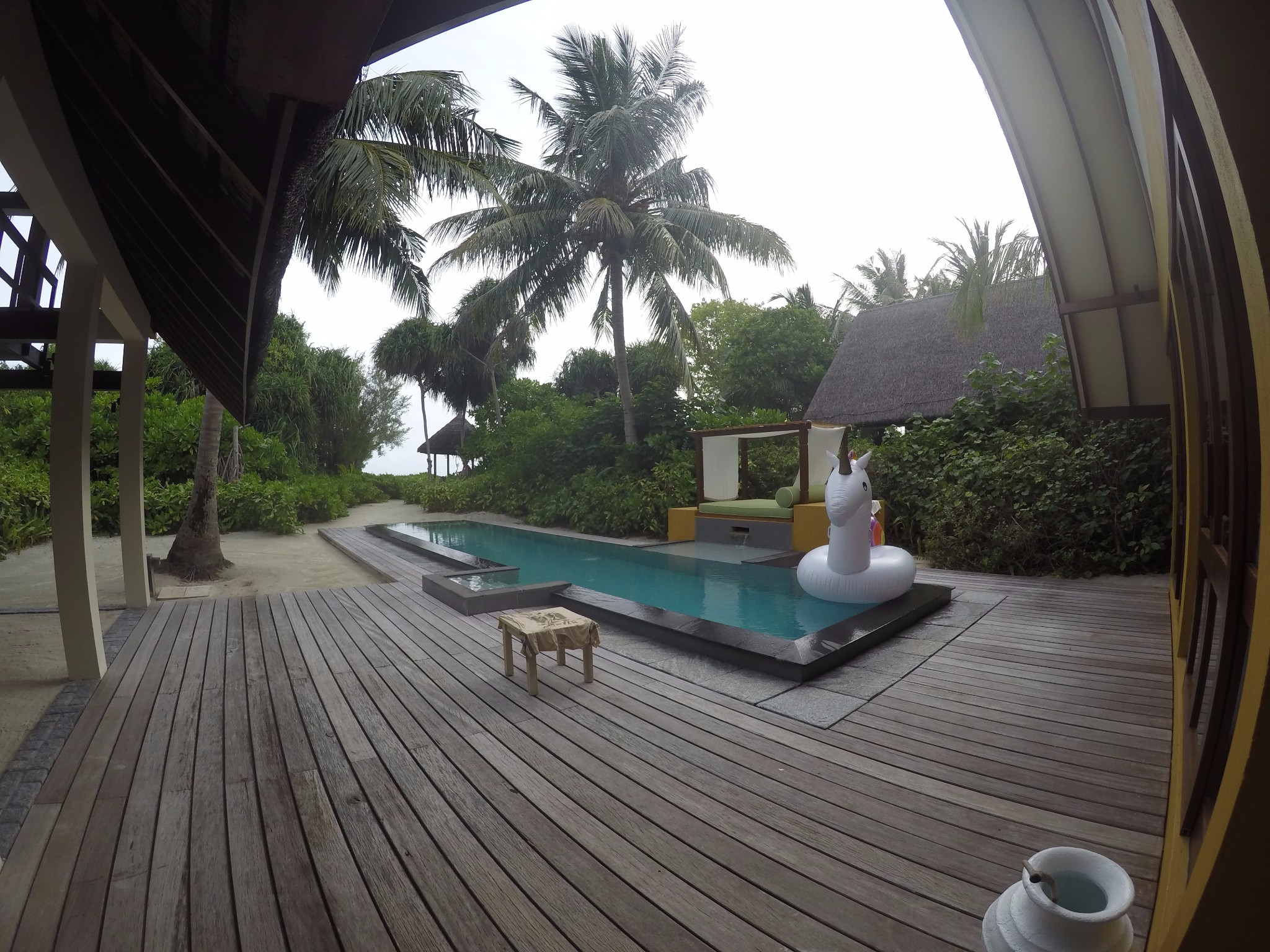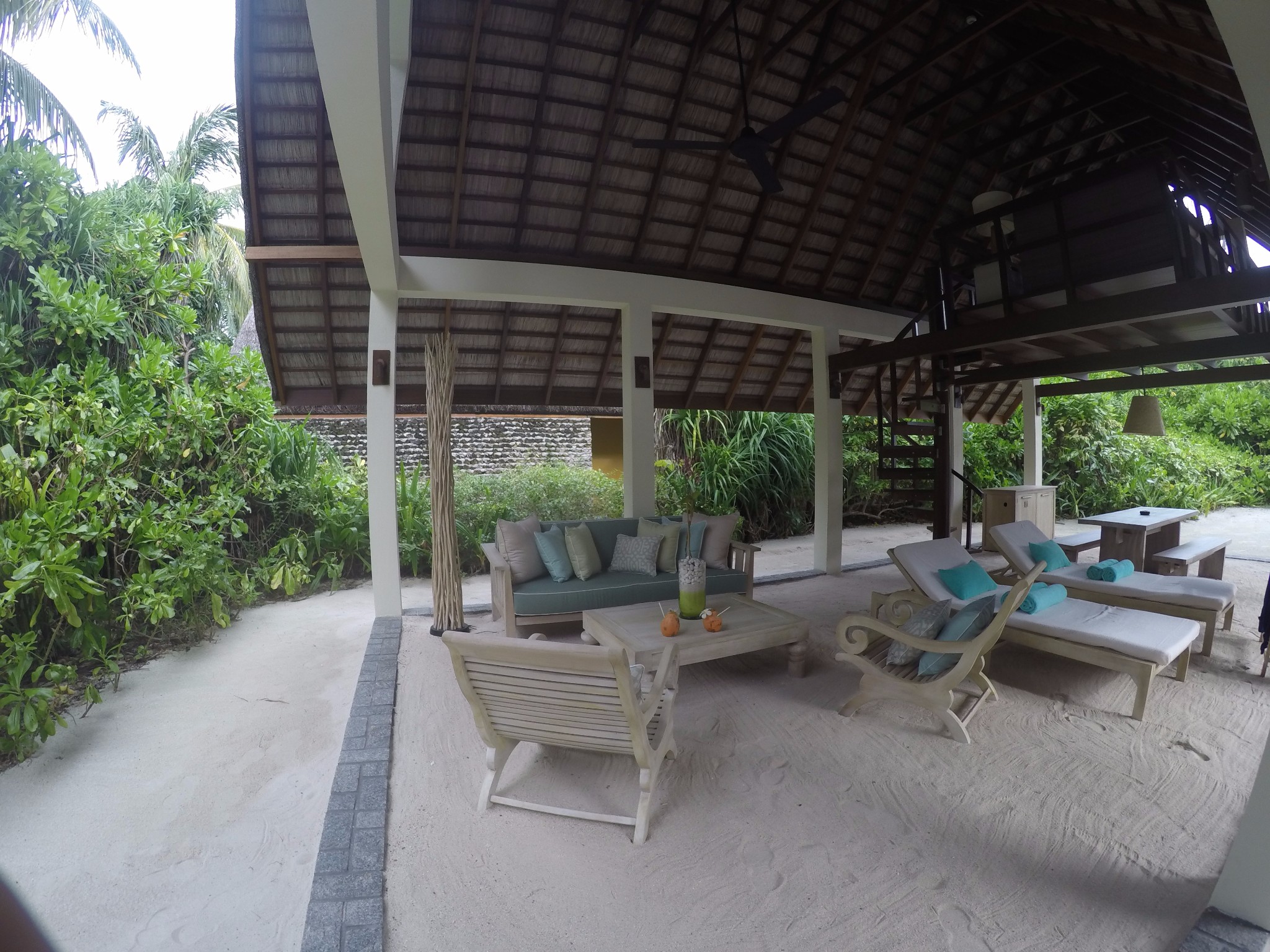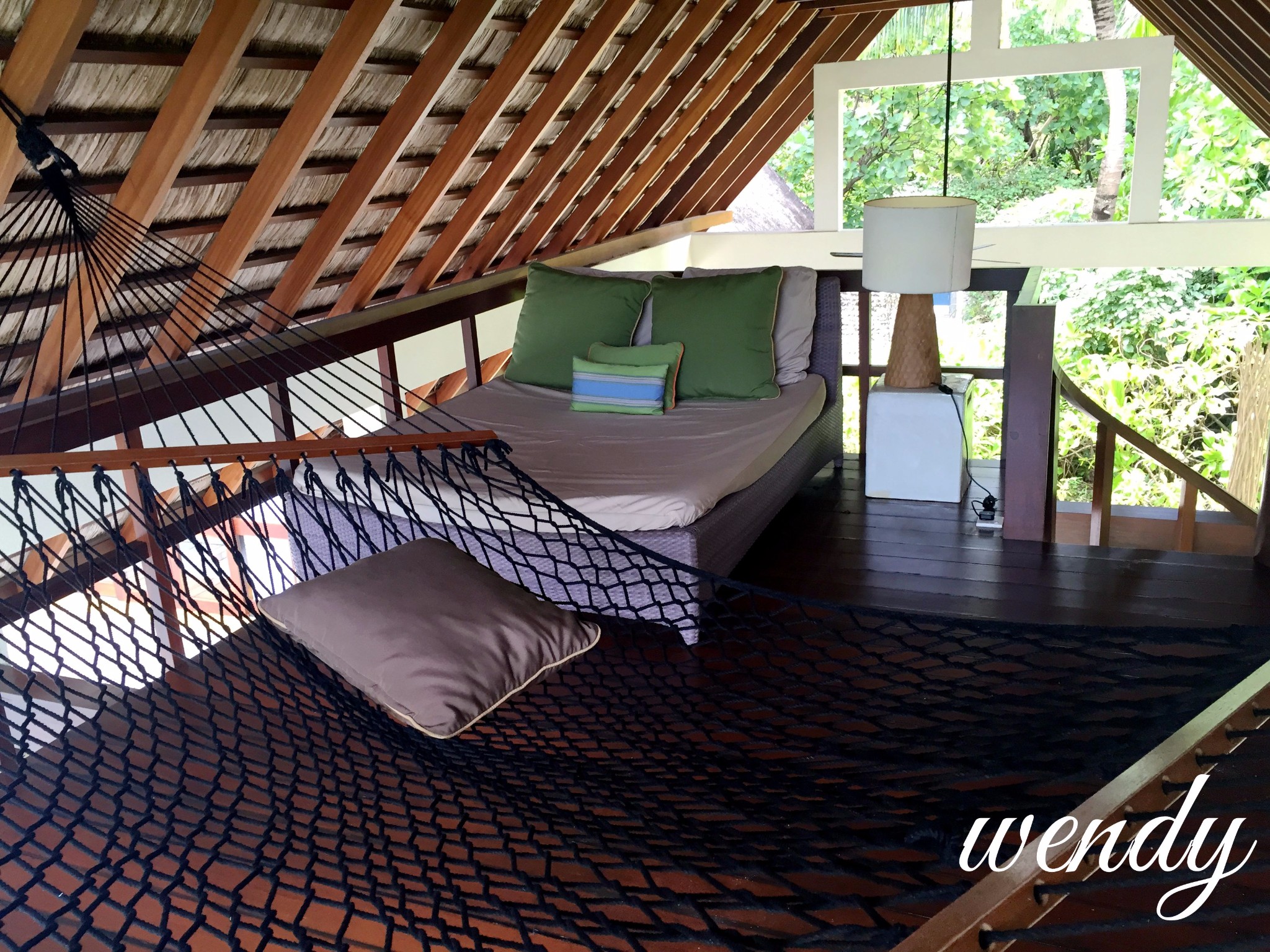 这次我们入住的房型是Beach Villa with Pool--带泳池的海滩别墅 和 Sunrise Water Villa-- 日出水上别墅,都有不同的体会,但是我个人感觉这个是头一次让我觉得沙屋很赞,之前都是喜欢水屋。可能是沙屋的硬件,前面的沙滩,私密性各方面都比较好。水屋是2层的,带一个小的阁楼,还有一个超大网床~舒适度极高。