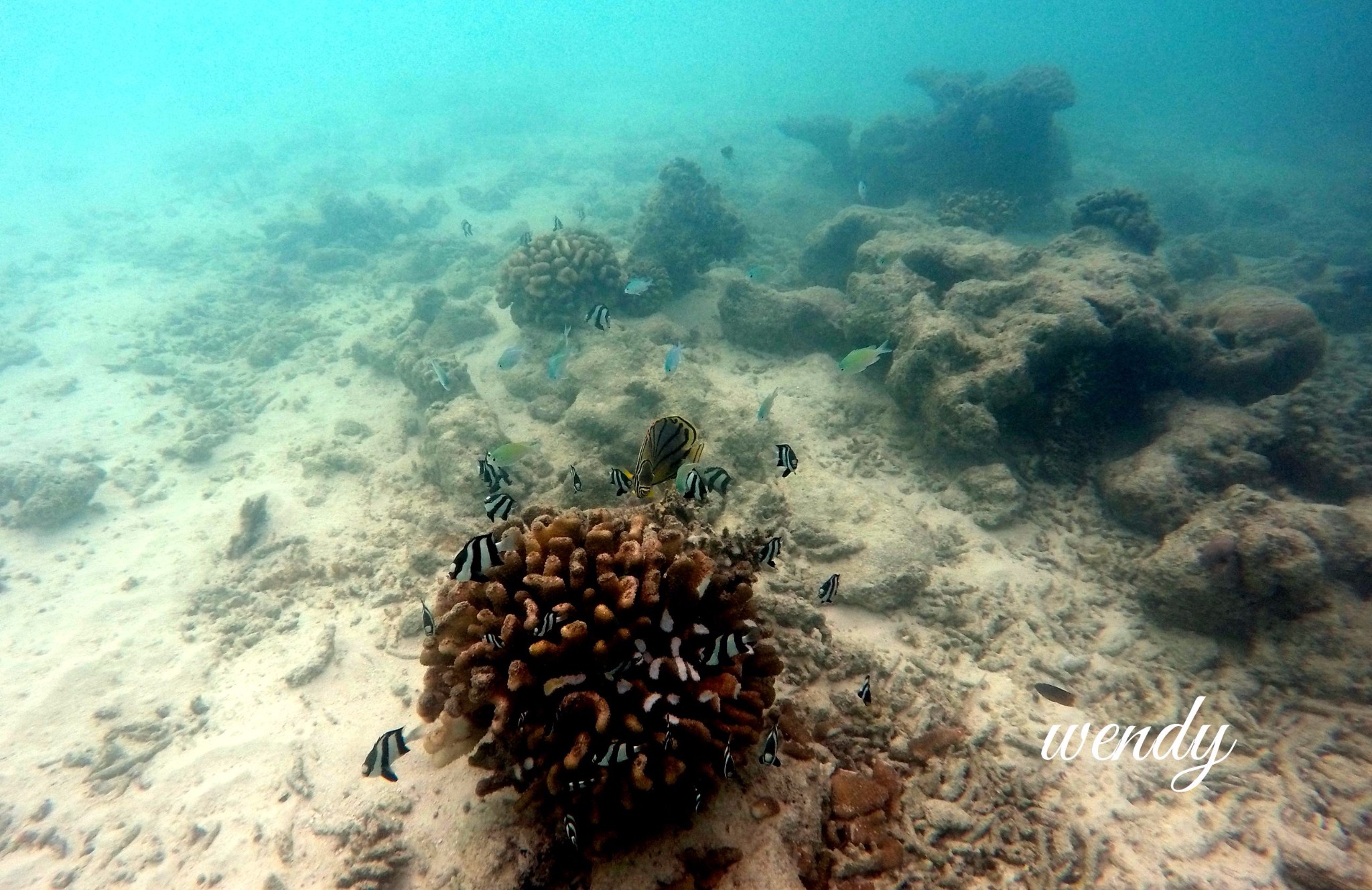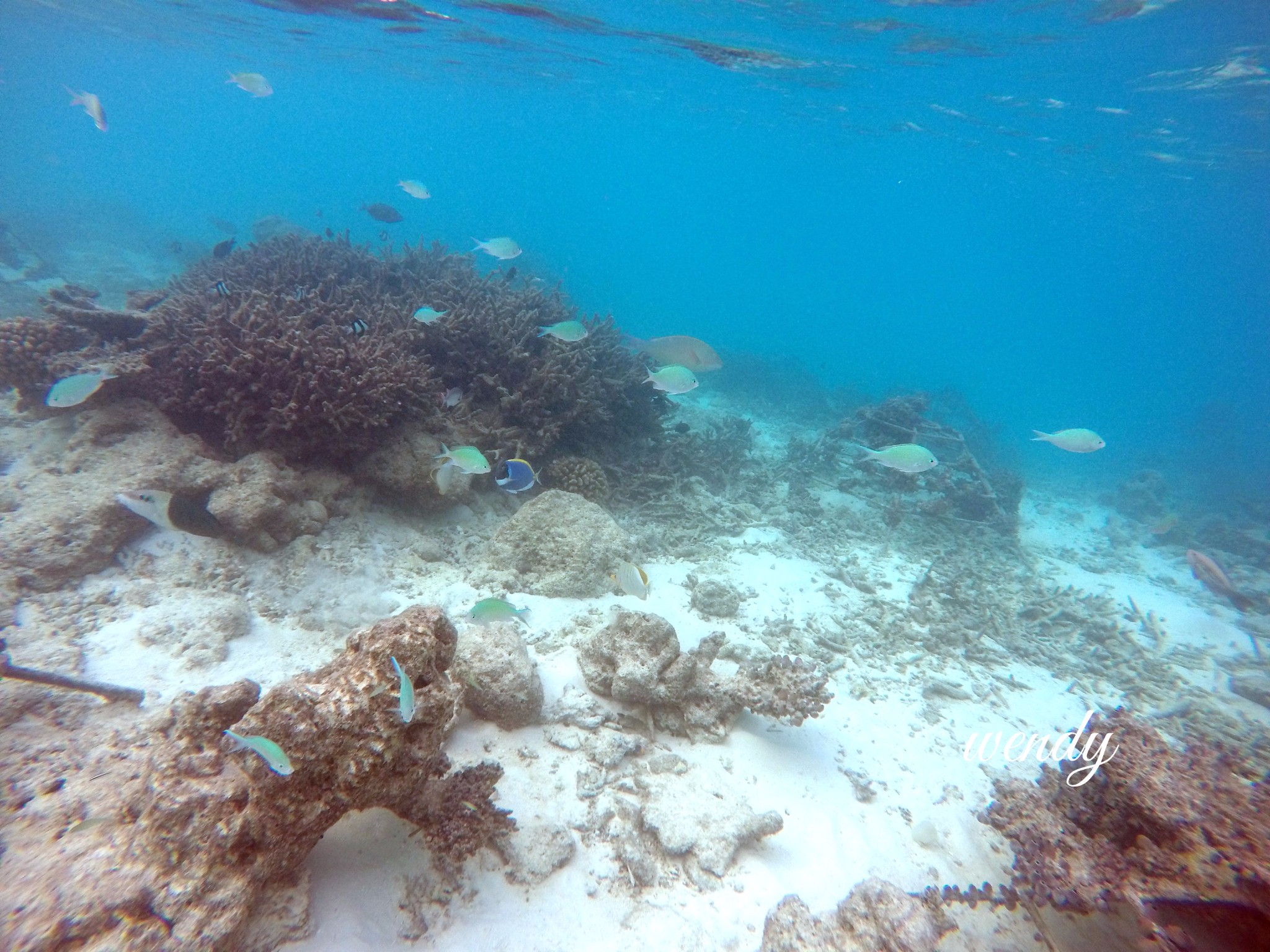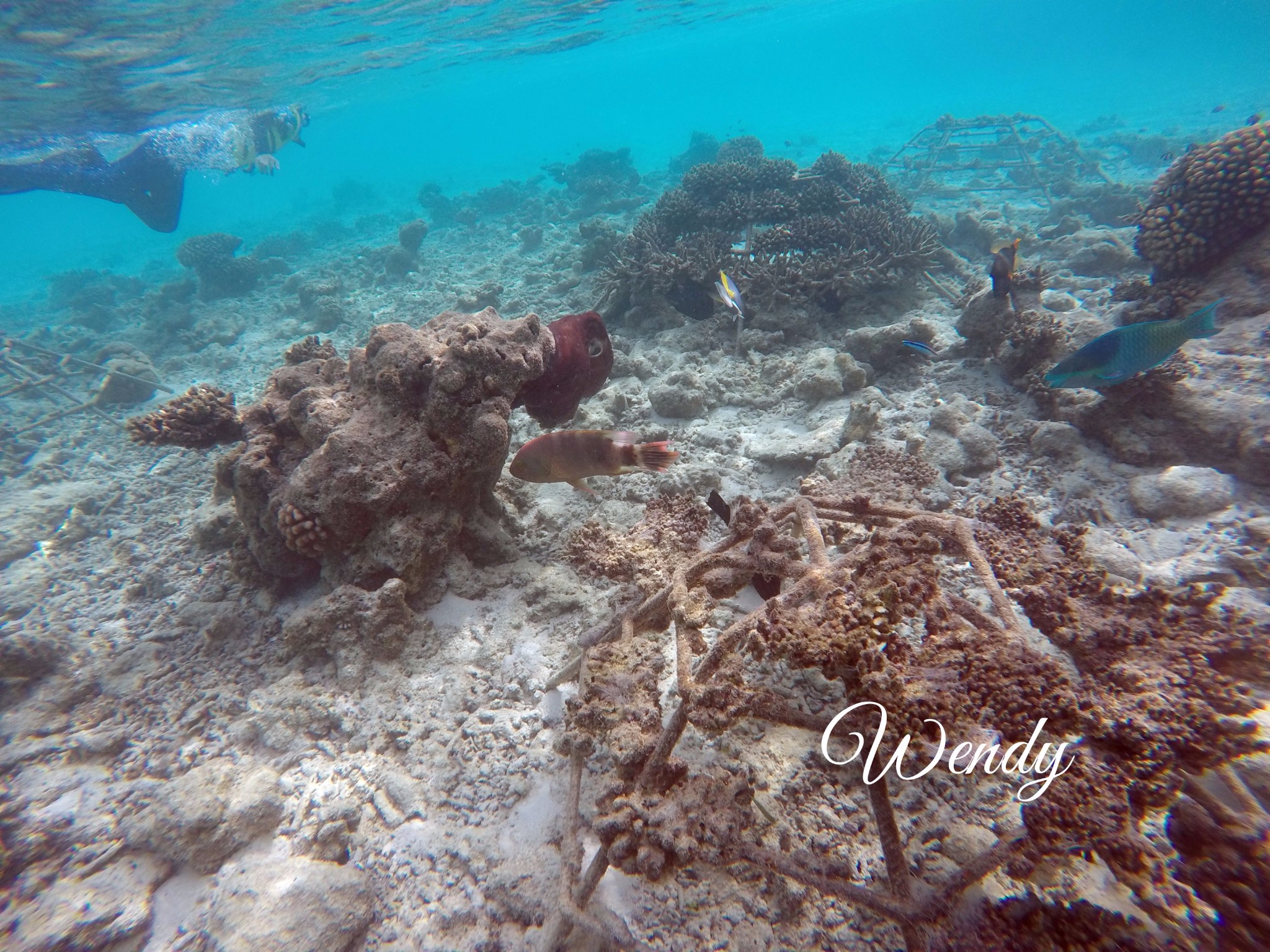 在寻找了3个地点后,还是没有找到我们大家想要的manta,酒店服务人员说如果没有找到manta就带我们去浮潜,我们一群人就去浮潜了,服务人员说看到5只海龟,我只看到2只。