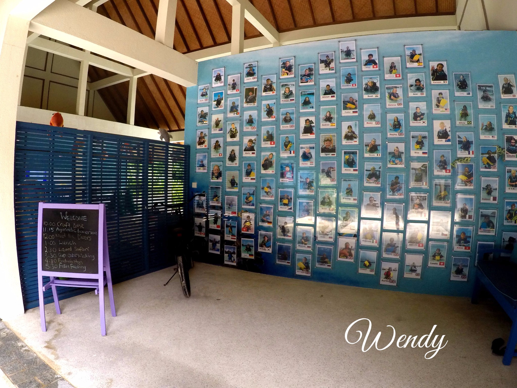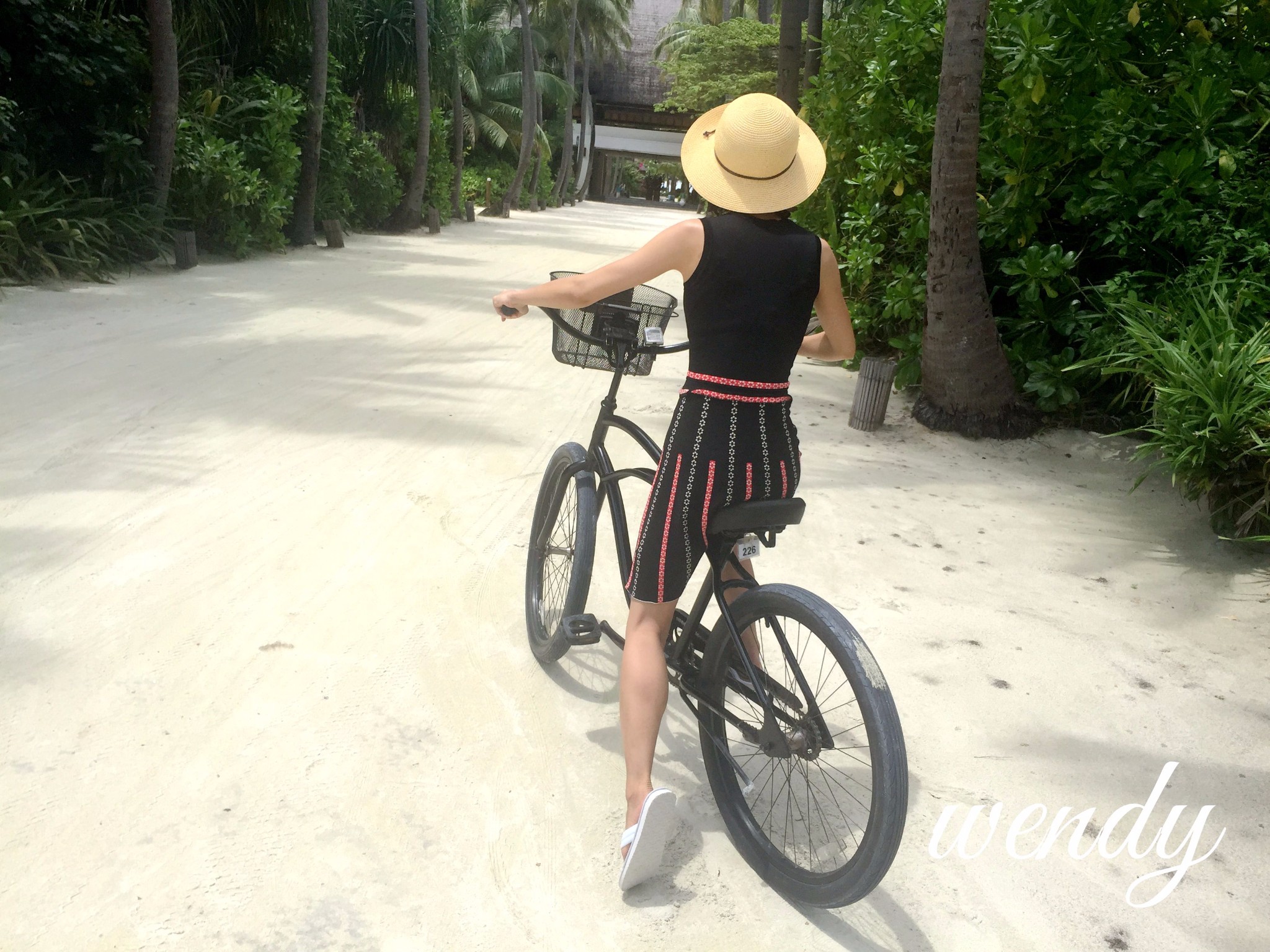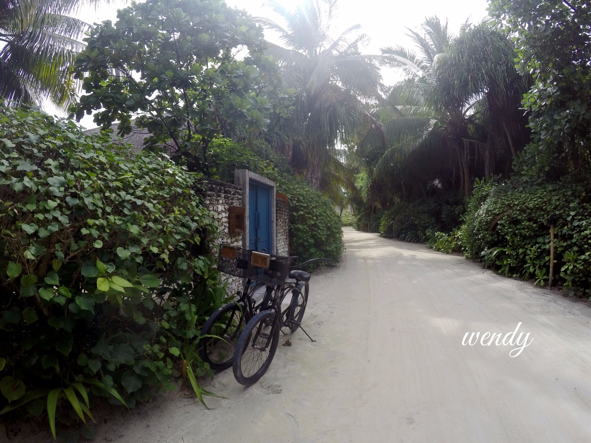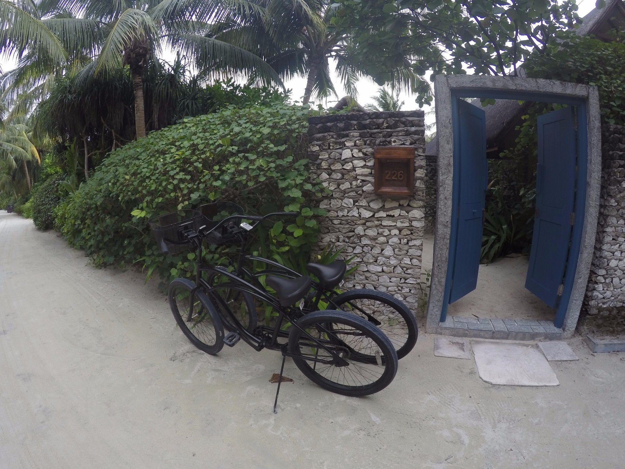 四季酒店-兰达吉拉瓦鲁岛度假村自行车前面都有自己的名字,车后面都是房号。