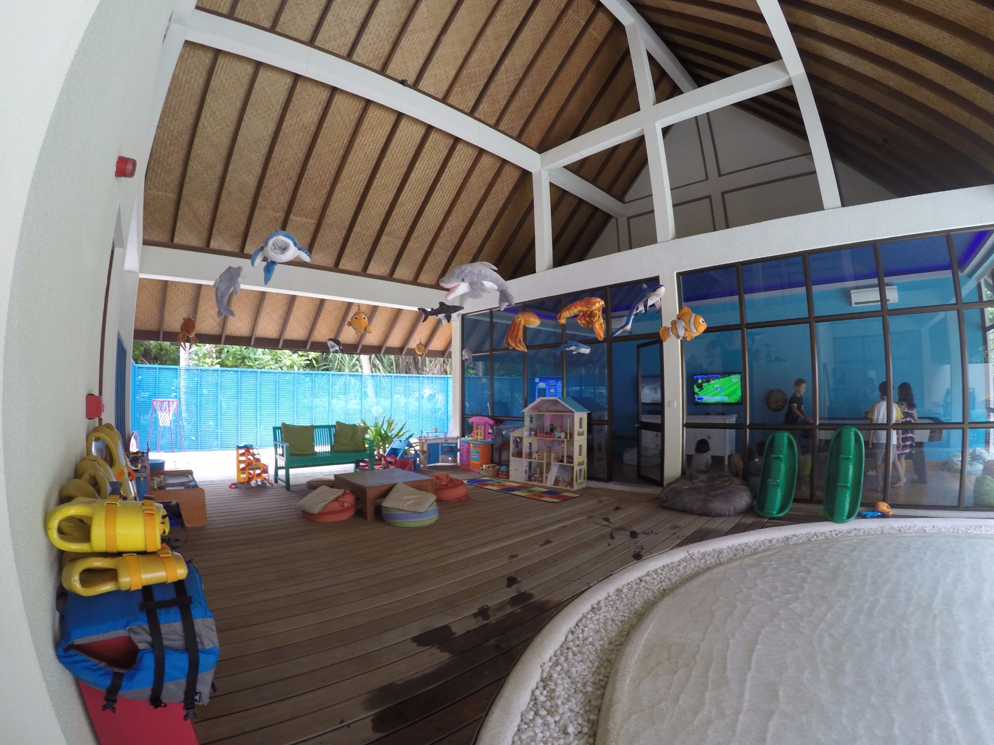 四季对儿童的服务算是比较细心,并且 比较周到,大四季的儿童俱乐部也蛮大的,带泳池,带滑梯,海盗船,还有一个乒乓球,小的篮球场,每日的活动都会列出来。3岁以上的儿童不需要保姆,可以放到儿童俱乐部托管。