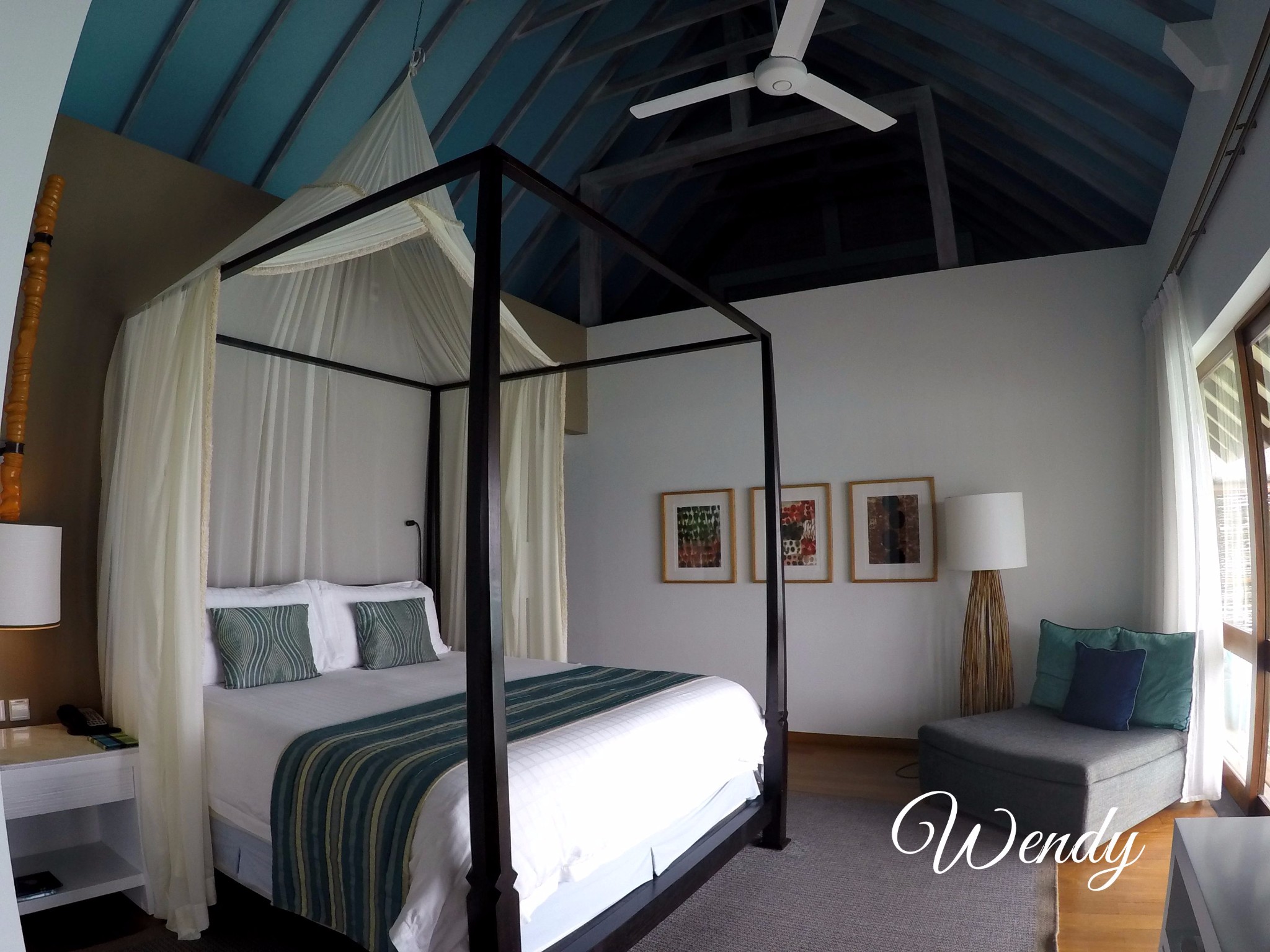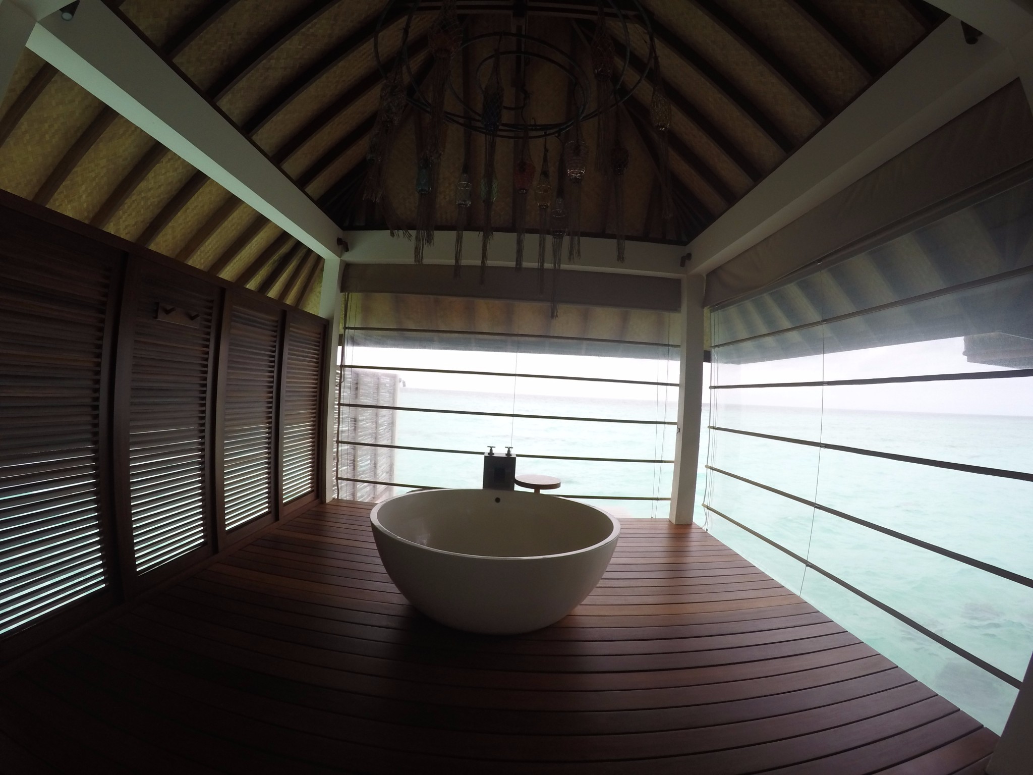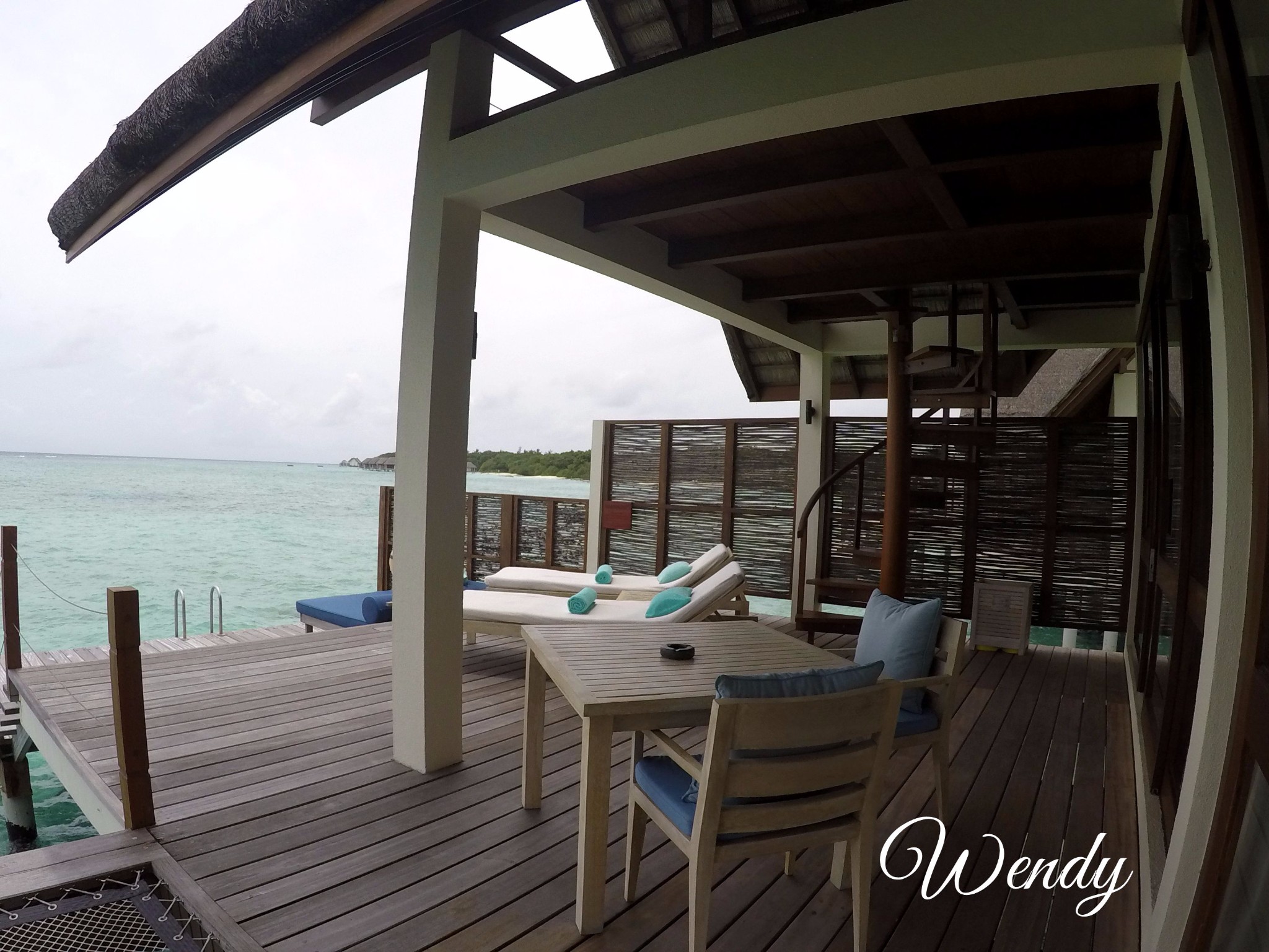 四季酒店-兰达吉拉瓦鲁岛度假村下面来看水屋,Sunrise/Sunset Water Villa-- 日出/日落水上别墅(建在水上) ,最主要的区别是一个是面向日出,一个是面向日落,日落侧的水屋是面向拖尾沙滩的。日出直接面向大海。内部基本都是一样的。