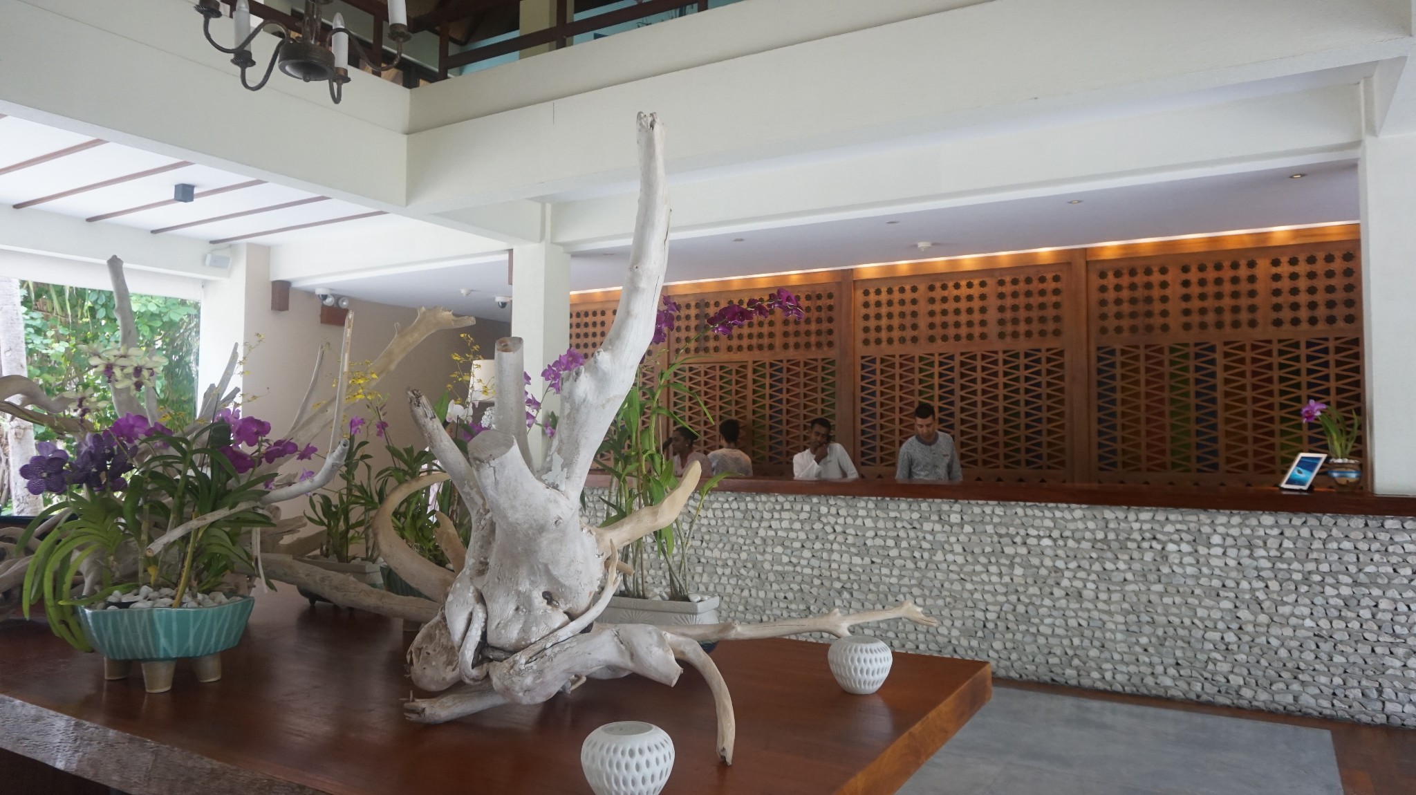 在四季的这几天,让我印象比较深刻的有: 1.在借用浮潜用具的时候,服务人员会很耐心的告诉你,吸气,呼气,然后看下面罩是否合适。在租用脚蹼的时候,服务人员会蹲下来,帮你穿戴好.感觉很贴心。 2.每天早上或者晚上,你会一路遇到好多服务人员和一些外国客户,一路“morning”不停。 3.在四季的员工和我们分享四季的时候,感觉他们整个人都充满热情,对四季好评如潮,一个如此的酒店,员工离职率特别低的一个酒店,让我深深的感受到了“四季人”“四季”这个酒店的魅力所在。