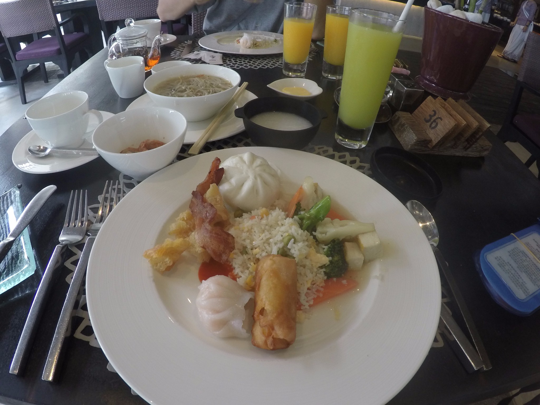 还有油条。 完全在国内的感觉。 之前在小四季喝习惯了鲜榨的果汁,后来去到大四季没有现榨的,就直接和服务人员问了一下,然后马上就送过来了。