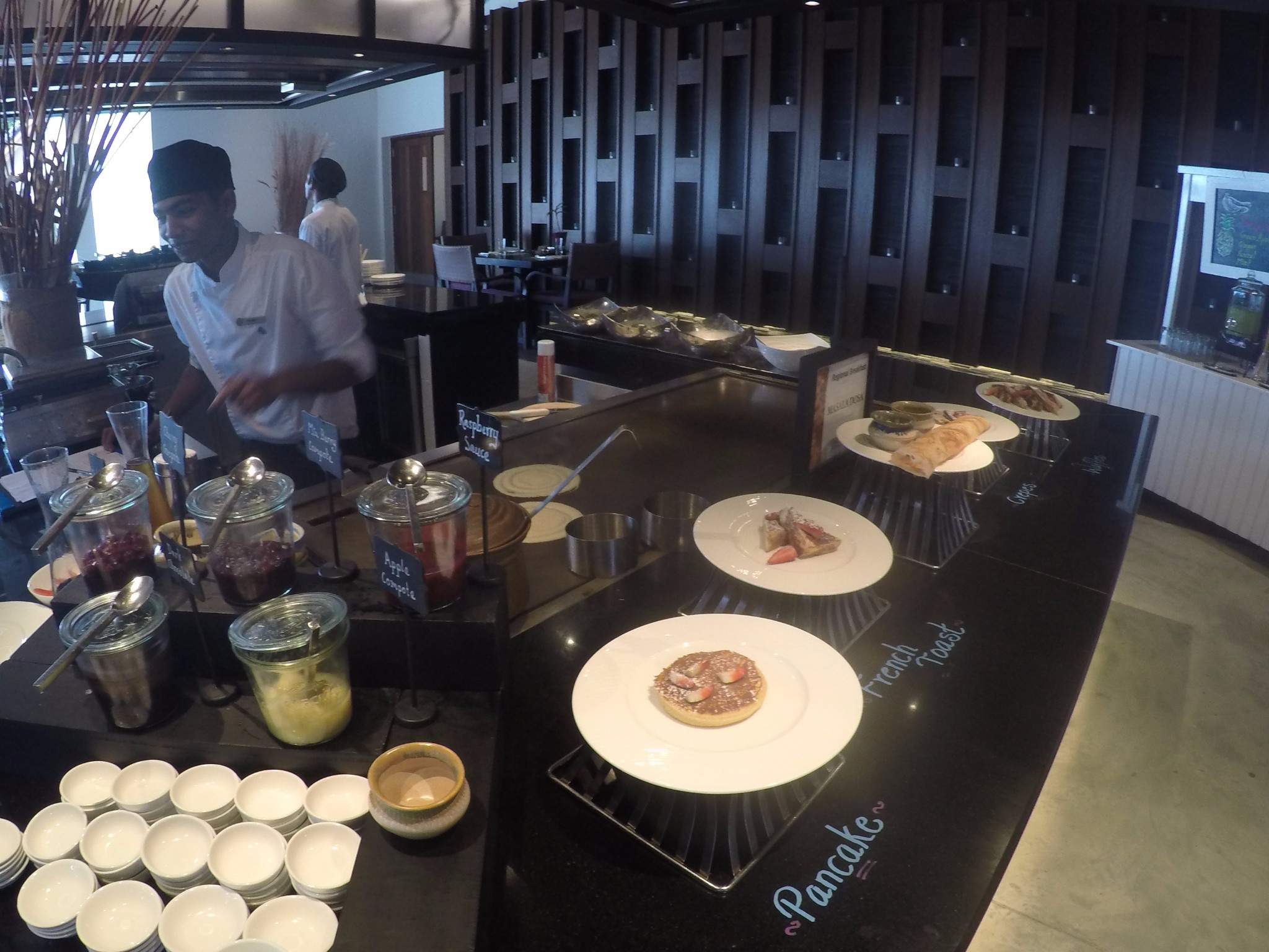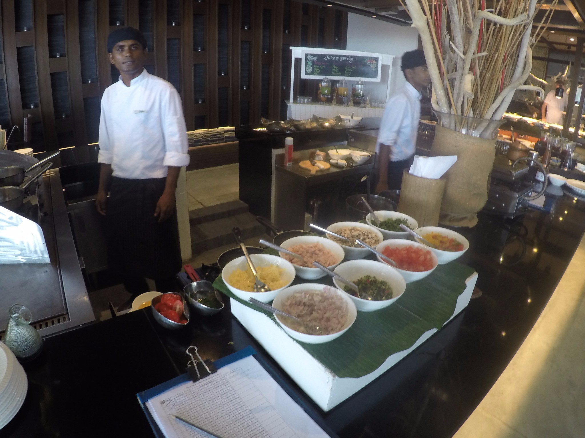 四季酒店-兰达吉拉瓦鲁岛度假村landaa餐厅我们用餐的次数较多。午餐是点餐,早晚餐是自助。 有包子,虾饺,馒头,还有粥,各种咸菜,对,还有米粉,应有尽有。
