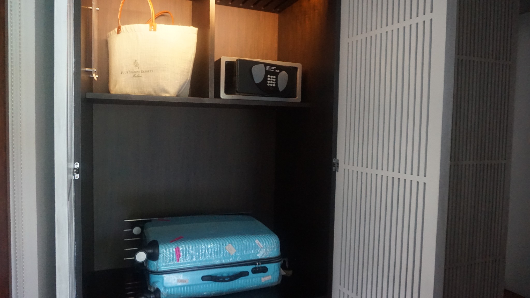 四季酒店-兰达吉拉瓦鲁岛度假村还有在酒店方便使用的手提袋(但是不能带走。因为四季环保,需要循环使用) 还有保险柜,贵重的物品请放到保险箱