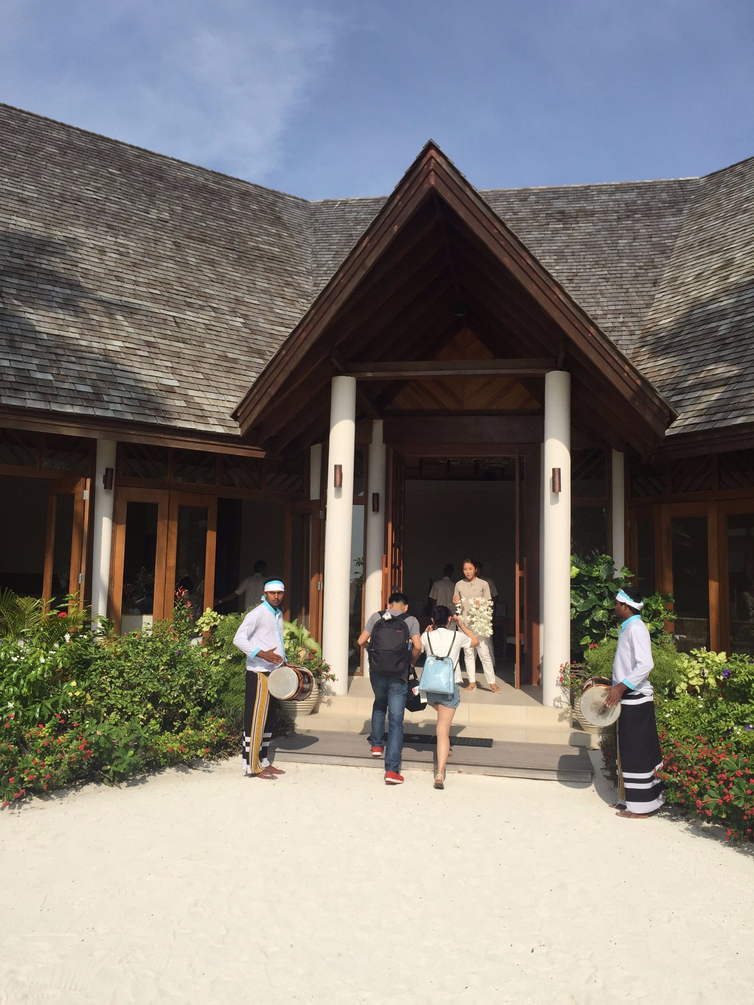 水飞上看到的马代,很美很美~ 经过将近70分钟的飞行,终于到了我们的目的地,Hideway...我们的管家已经列队欢迎,还有拍着鼓的小黑,行李根本不用我们拿,只管下飞机进酒店就好,行李会直接送到我们房间,真是享受超棒的待遇啊。