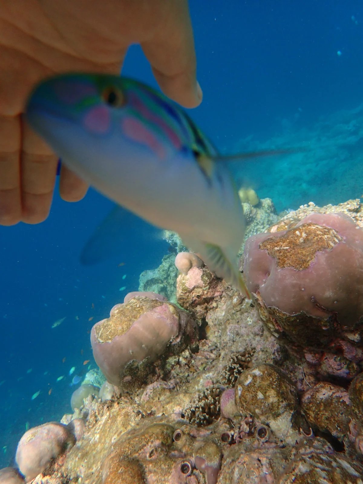 各式各样美丽的小鱼,珊瑚,我和老公不断的说,太美了~ 一直浮潜到中午,太热了,我们就回房间洗个澡休息休息,预约了晚上出海钓鱼,是最传统的手线钓鱼,全凭运气。