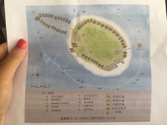 来自中国的工作人把我们带到休息室,给我们介绍了岛上各类设施,交代了注意事项,就等着两个小时后入住房间了!