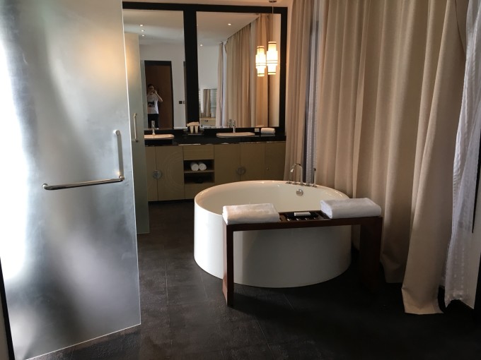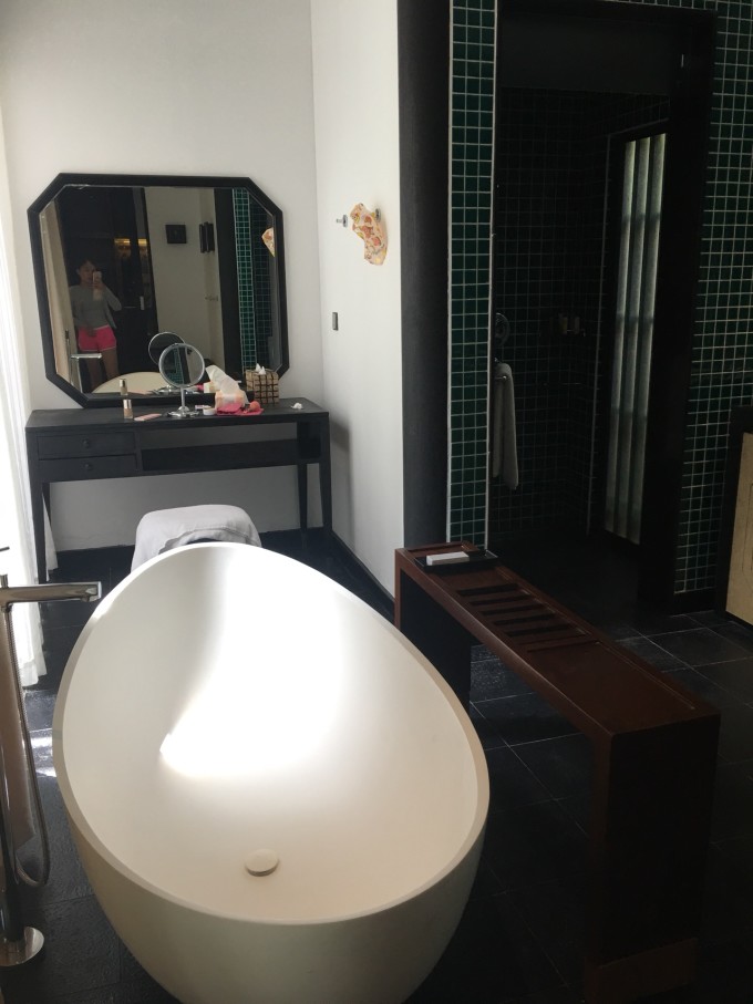 美呆有木有,进入房子里,面积超大,一室一厅还有一个炒鸡大的洗漱间,马桶和淋浴间是分离的,浴缸也超大,可以洗鸳鸯浴