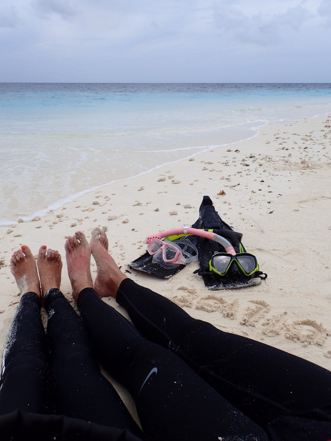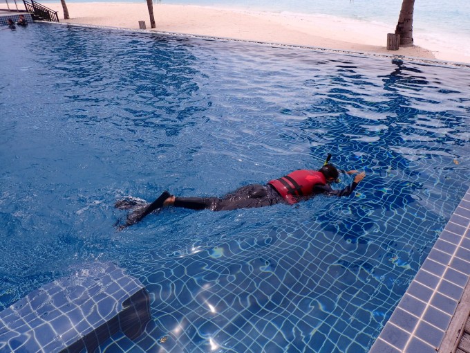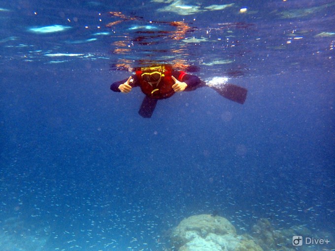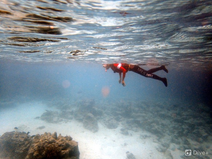 关于浮潜,水屋附近的风浪太大,感觉不适合浮潜。最好的地带是码头的海沟处~浮潜用具在潜水学校可以免费租赁,我们就租了一个脚蹼,其他的都自己从家里带了,这样比较卫生哦!以下图片均摄于码头海沟处。