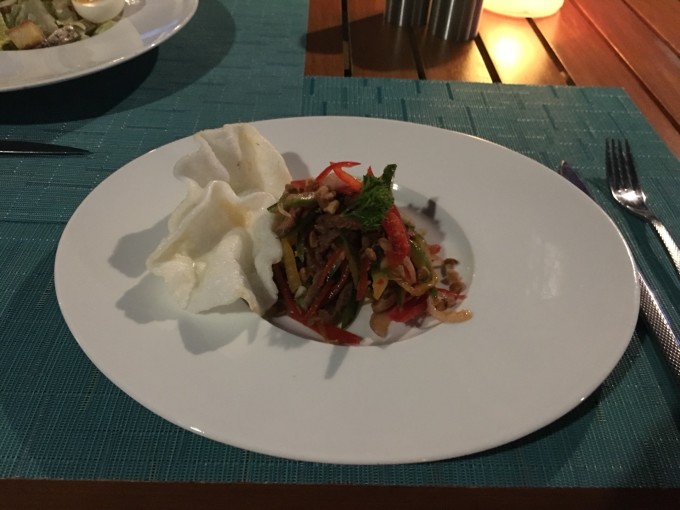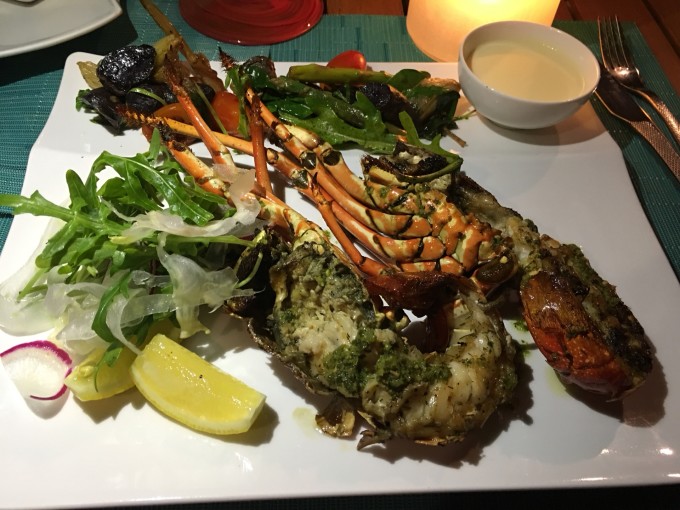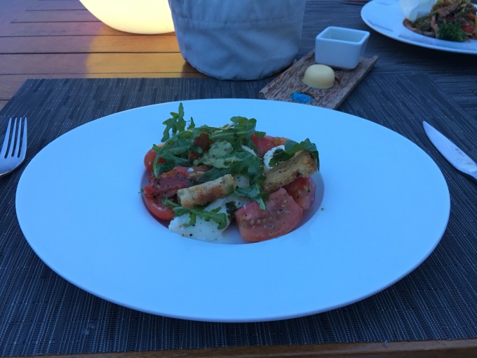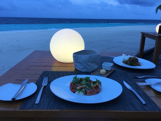 休息之后就去蓝盐餐厅吃晚餐啦,餐厅的菜挺好吃的,之前看了好多攻略都说难吃,事实上真的挺好吃的呀,特别是鱼类。 面朝大海吃晚餐的感觉真惬意~
