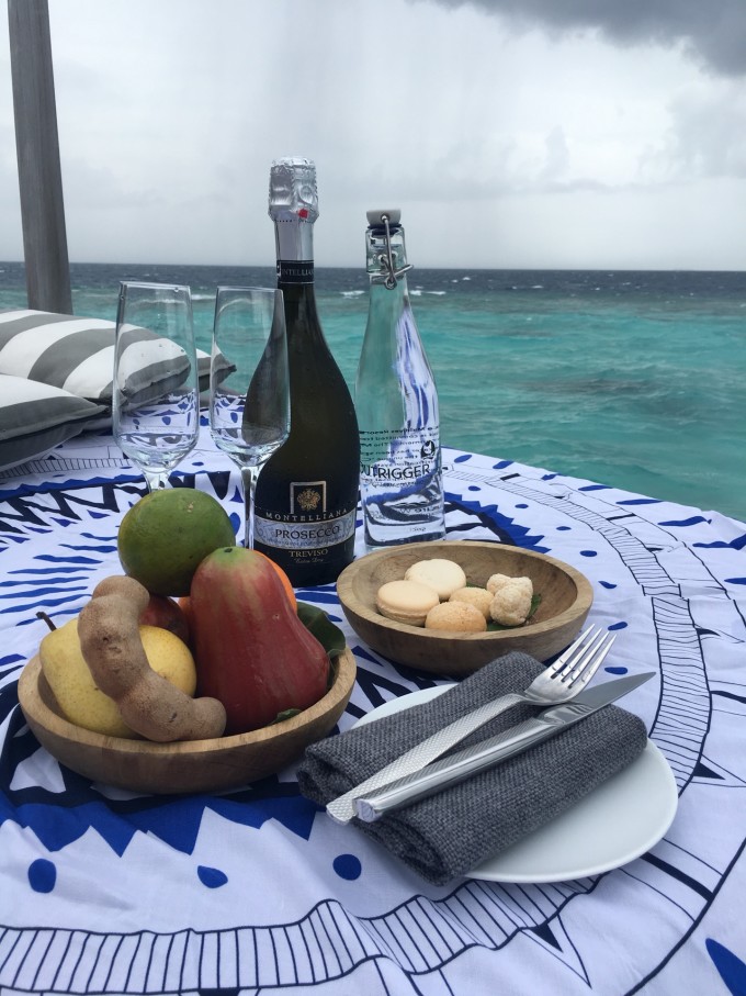 关于早餐,蜜月套餐有一个项目是可以有一次机会送早餐到自己房间,于是我们预定了第二天早上的送餐,在水屋吃比较棒哦!