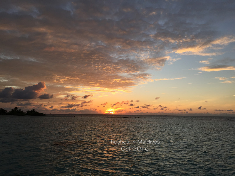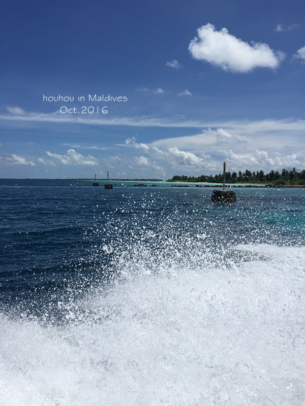 四天时间,说长不长,说短不短,我们在这里远离城市的喧嚣,感受着宁静,呼吸着甜甜的空气。到了要离开的时候,总是不舍的。但我还是有点想家,想念火锅的味道,哈哈哈! 离岛的时候是下午六点,临走时很多工作人员出来送我们,还问尹先生对他们的服务满不满意啊,食物满不满意啊,有没有什么需要改进的啊?不好意思,全程英文,我还是不要插嘴了!上了快艇一直开到很远,他们都一直朝着我们挥手说再见,好感动呢